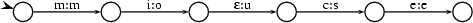 Now, we want to take the intermediate form that we produced in the previous section and map it to the underlying form. The input that this transducer has to accept is of one of the following forms: